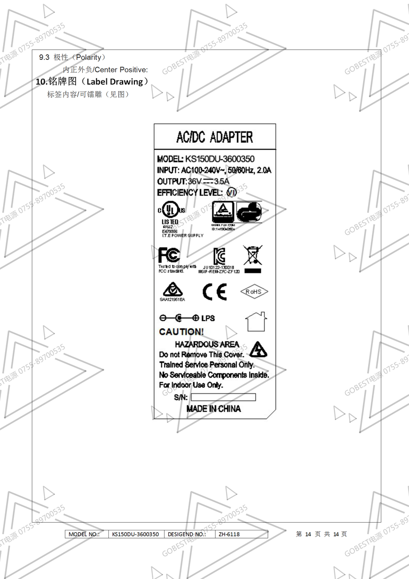 36V3.5A電源適配器規(guī)格書(shū)美規(guī)UL認(rèn)證