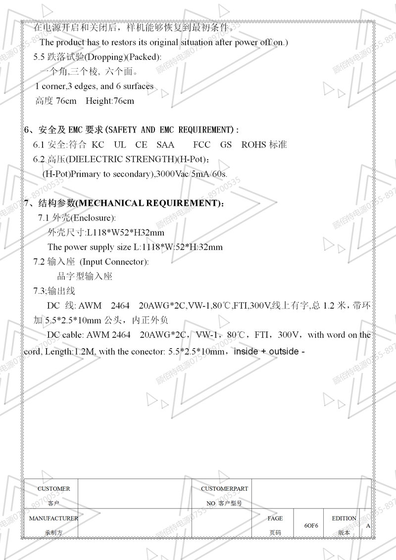 24V6A電源適配器帶PFC電路規(guī)格書(新模具)
