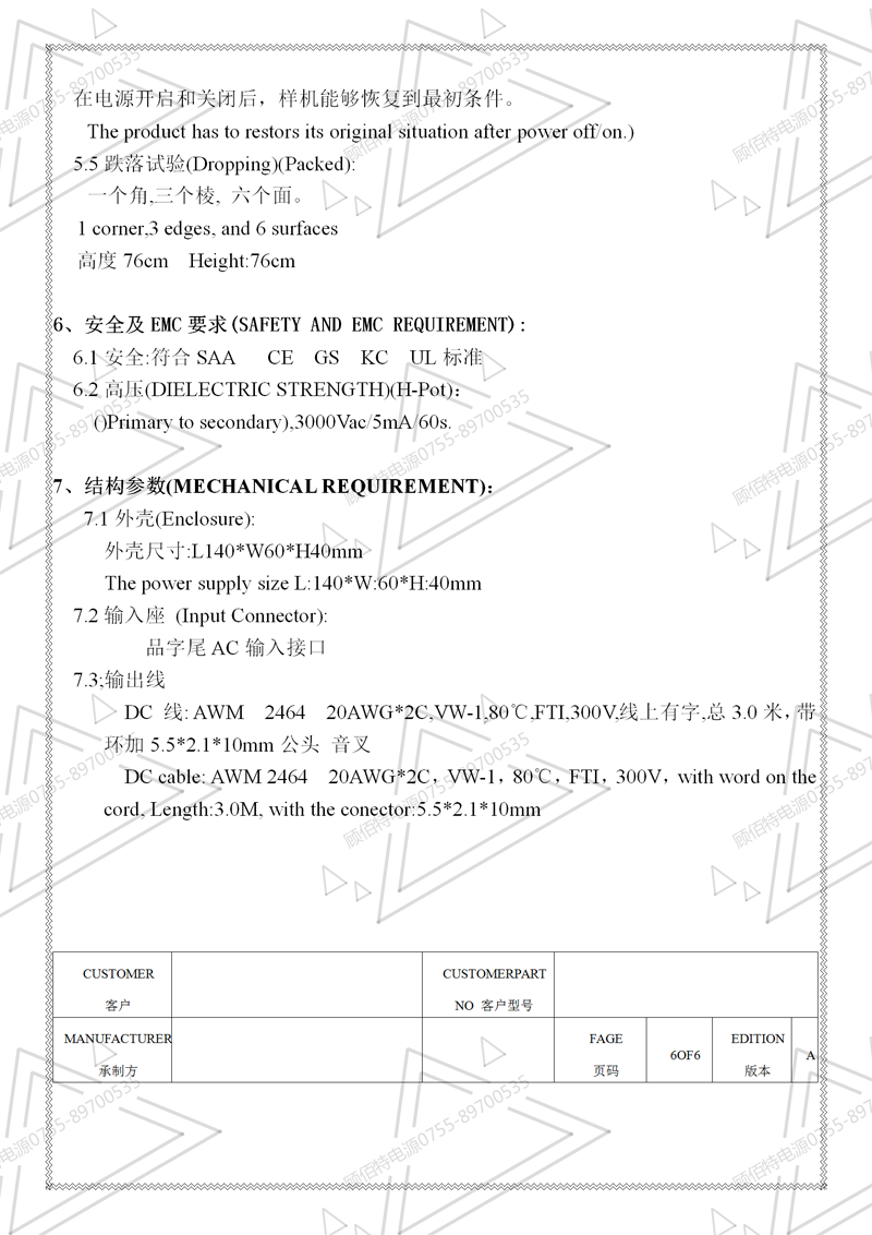 24V6A電源適配器帶PFC電路規(guī)格書(新模具)