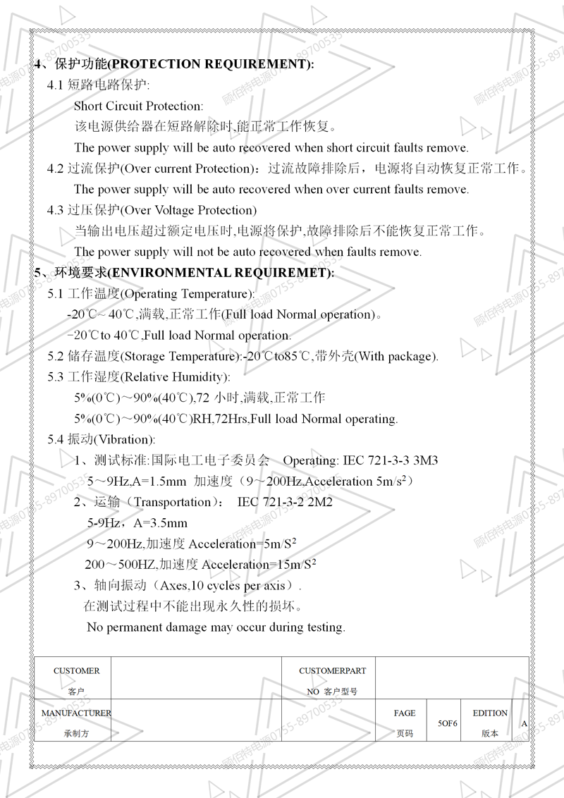 12V1.25A電源適配器規(guī)格書(桌面式)