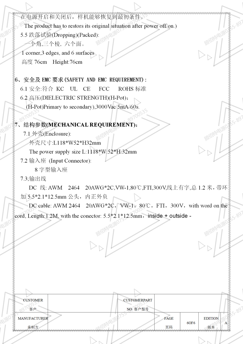 24V6A電源適配器帶PFC電路規(guī)格書(shū)(新模具)