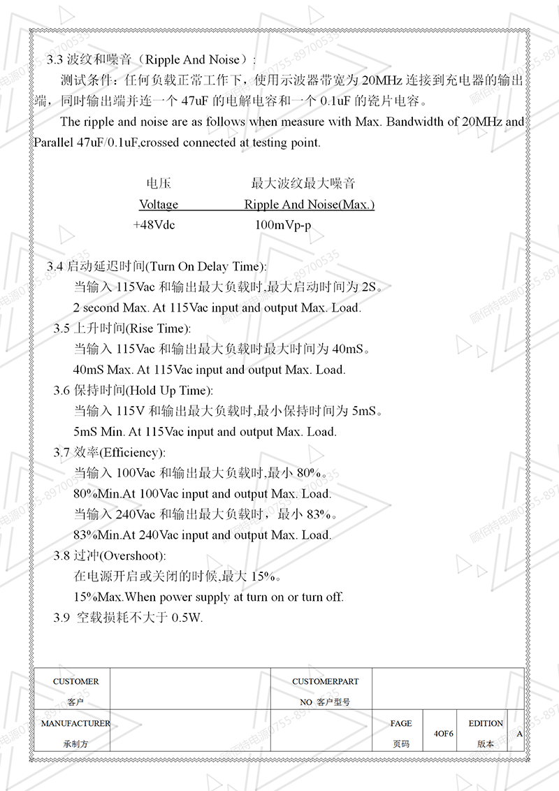 電源規(guī)格書