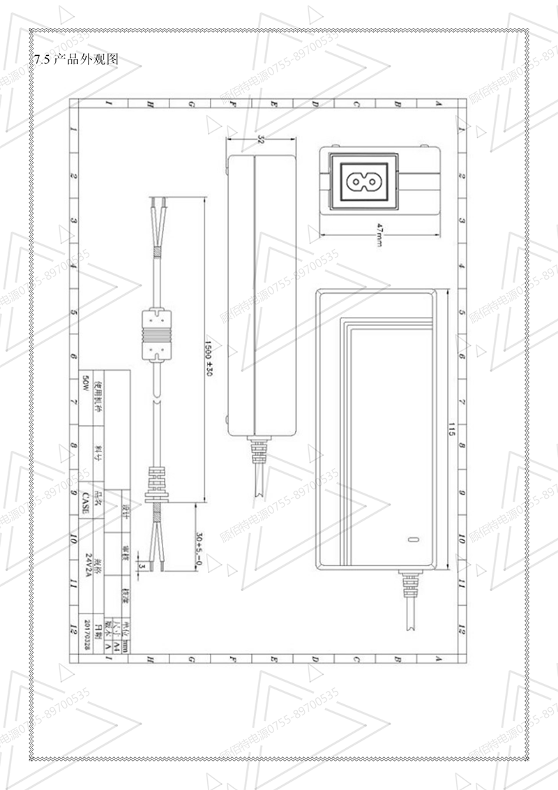 24V5A電源適配器規(guī)格書(新模具)
